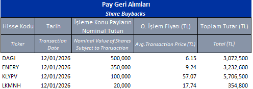 Pay geri alım programları kapsamında ilgili tarihte geri alım yapan şirketlerin listesini aşağıdaki tabloda bulabilirsiniz.