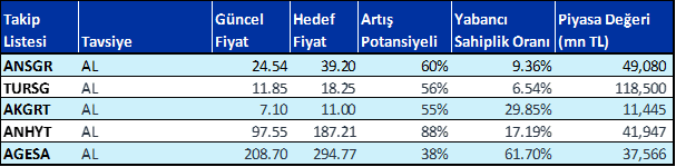 Takip listemizde yer alan sigorta şirketleri için hedef fiyatlarımız ise aşağıdaki tabloda yer almaktadır.