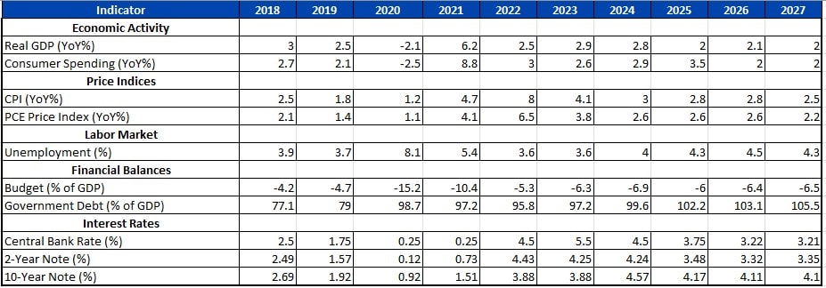 Gelişmiş piyasalarda manşet enflasyon oranları pandemi sonrası zirvelerinden büyük ölçüde geriledi ancak merkez bankalarının hedeflerine ulaşması için son düzlük hala zorlu. Görüşümüz, küresel enflasyonun ılımlılaşacağı, ancak küreselleşmenin azalması, demografik baskılar ve küresel ticaret endişeleri nedeniyle 2020 öncesi döneme göre yapısal olarak daha yüksek kalacağı yönünde. ABD’de Trump’ın mali teşvik tedbirleri ve küresel ticaret politikalarının etkileriyle enflasyonun %3’ün altında %2.6 civarında dengelenmesini bekliyoruz.