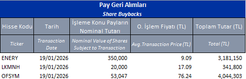 Pay geri alım programları kapsamında ilgili tarihte geri alım yapan şirketlerin listesini aşağıdaki tabloda bulabilirsiniz.