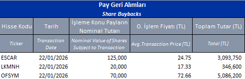 Pay Geri Alımları 22/01/2026