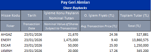 Pay geri alım programları kapsamında ilgili tarihte geri alım yapan şirketlerin listesini aşağıdaki tabloda bulabilirsiniz.
