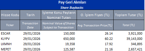 Pay geri alım programları kapsamında ilgili tarihte geri alım yapan şirketlerin listesini aşağıdaki tabloda bulabilirsiniz.