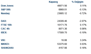 Uluslararası Piyasalar Kapanış Raporu – 26.01.2026