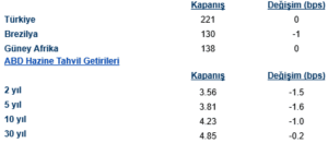 Fed tarafında faizlerin sabit tutulmasının ardından veri akışı sınırlı kalırken, ABD Başkanı Trump’ın yeni Fed başkan adayını yakında açıklayacağını belirtmesi piyasada politika belirsizliğini canlı tutuyor. ABD 10 yıllık tahvil faizi %4.23 seviyesine gerilerken dolar endeksinde sınırlı hareket izlendi. Ayrıca Amerika hazinesi 7 yıllık ihracı %4.01 seviyesinden gerçekleşti. Bir önceki 7 yıllık tahvil ihracına oluşan talepten daha düşük talep geldi.   Avrupa tahvillerinde ise pozitif görünüm hakimdi.  Almanya 10 yıllık hazine kıymeti 1.8 baz puan düşüş ile %2,83 getiri seviyesinde, Fransa 10 yıllık hazine kıymetleri ise %3,41 getiri seviyesinde kapanmış oldu.  İngiltere tahvillerine baktığımızda ise 10 yıllık kıymetlerde yaklaşık 3 baz puan düşüş ile %4,50 getiri seviyesinden işlem gördü.