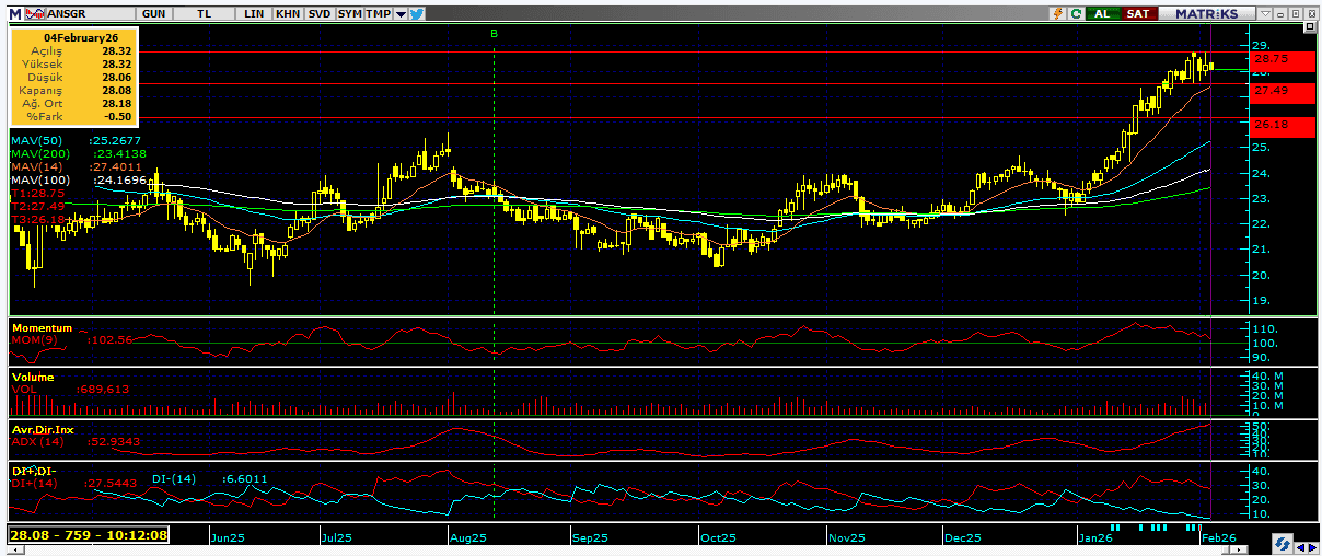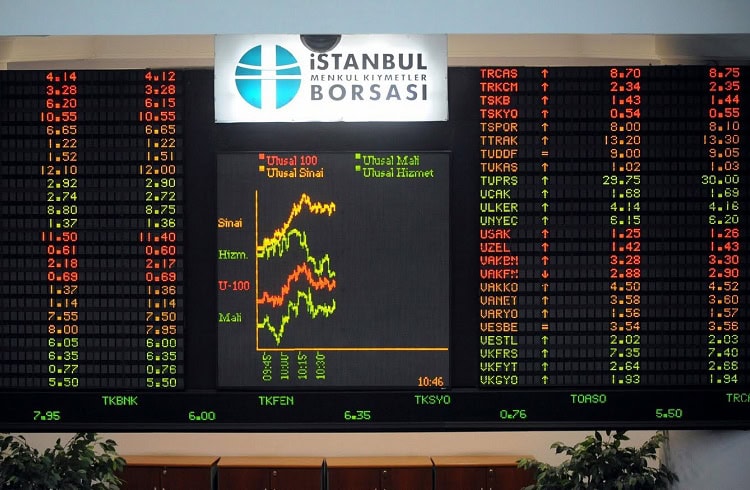 BIST piyasalarında oluşan tüm verilere ait telif hakları tamamen BIST’e ait olup, bu veriler tekrar yayınlanamaz. Pay Piyasası, Borçlanma Araçları Piyasası, Vadeli İşlem ve Opsiyon Piyasası verileri BIST kaynaklı en az 15 dakika gecikmeli verilerdir.