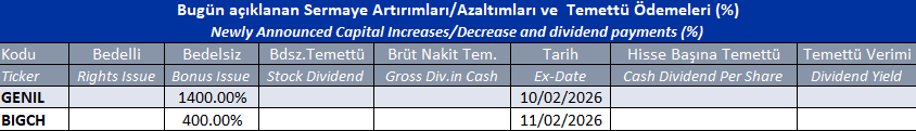 BIST piyasalarında oluşan tüm verilere ait telif hakları tamamen BIST’e ait olup, bu veriler tekrar yayınlanamaz. Pay Piyasası, Borçlanma Araçları Piyasası, Vadeli İşlem ve Opsiyon Piyasası verileri BIST kaynaklı en az 15 dakika gecikmeli verilerdir.