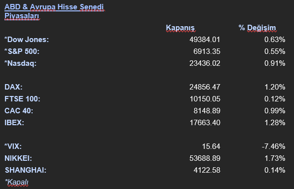 Uluslararası Piyasalar Kapanış Raporu – 11.02.2026