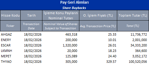 Pay Geri Alımları 18/02/2026