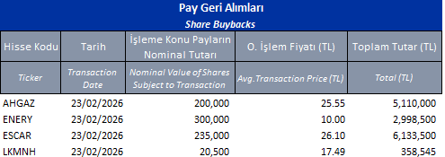 Pay Geri Alımları 23/02/2026