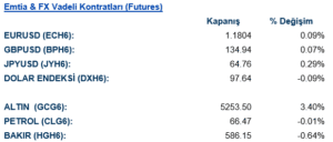 Döviz piyasalarında dolar endeksi 97,65 seviyesinde hafif gerilerken, majör paritelerde sınırlı hareketler görüldü. EUR/USD 1,1804 seviyesinde dengelenirken, sterlin ve yen tarafında dolar karşısında hafif değer kazançları izlendi. Doların belirgin güçlenmemesi, riskten kaçışın daha çok tahvil ve altın üzerinden gerçekleştiğine işaret etti. Altın vadeli kontratı %3,40 yükselerek 5.253 dolar seviyesine çıktı ve güvenli liman talebinin net biçimde arttığını gösterdi. Petrol fiyatları yataya yakın seyrederken bakır %0,69 geriledi. Altın ile bakır arasındaki bu ayrışma, yatırımcıların büyüme beklentileri konusunda temkinli duruş sergilediğini gösteriyor.