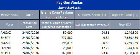 Pay geri alım programları kapsamında ilgili tarihte geri alım yapan şirketlerin listesini aşağıdaki tabloda bulabilirsiniz.