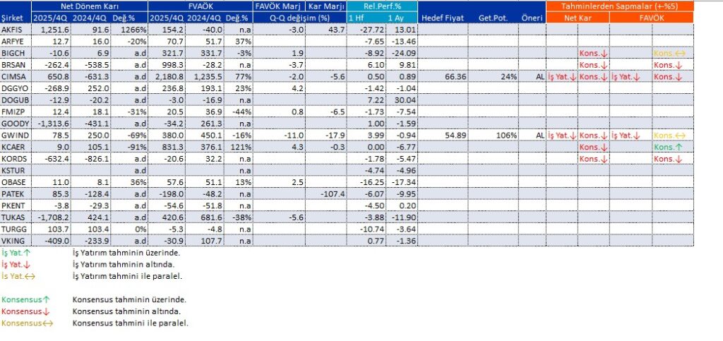 Açıklanan Kar Rakamları 25/02/2026