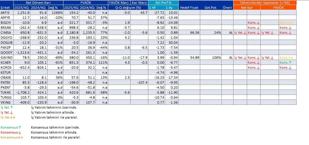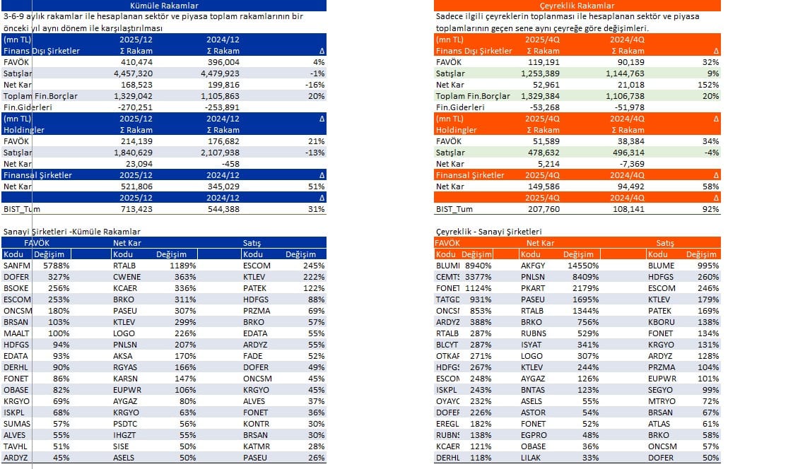 Açıklanan Kar Rakamları 26/02/2026
