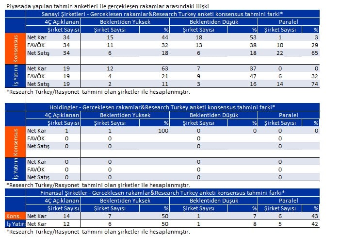 Raporun içinde ise, şu ana kadar finansallarını açıklayan BIST şirketlerini, kümüle edilerek toplanmış toplu piyasa ve sektör karlılıklarını ve piyasa tahminleri ile açıklanan finansal sonuçların karşılaştırmalı analizini bulabilirsiniz.