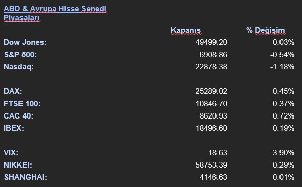 Uluslararası Piyasalar Kapanış Raporu – 26.02.2026
