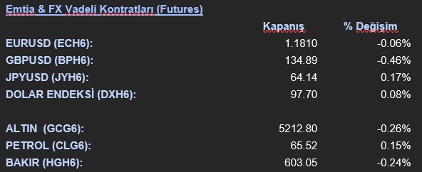 Emtia piyasasında enerji fiyatları, ABD ve İran arasındaki nükleer görüşmelerde ilerleme sağlandığına dair haberlerle dalgalandı. WTI ham petrol 65,43 dolar (+%0,02) ve Brent petrol 70,92 dolar (+%0,10) seviyelerinde dengelenirken, doğalgaz tarafında ICE TTF %3,78 yükselişle 32,22 Euro oldu. Değerli metallerde Spot Altın %0,65 artışla 5.198,32 dolara ulaşarak güç toplarken, Gümüş %0,40 düşüşle 88,87 dolara geriledi. Baz metallerde ise nikel %2,16’lık sert düşüşle 17.694 dolara inerken, demir cevheri %0,07’lik sınırlı bir artış gösterdi.