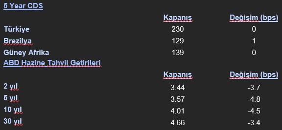 Tahvil piyasasında Nvidia sonrası risk iştahındaki azalma alımları destekledi ve getiriler aşağı geldi. ABD 10 yıllık tahvil faizi 4,2 baz puan düşüşle %4,01 seviyesine geriledi. Gelişmekte olan ülkelerde ise Türkiye 10 yıllık eurotahvil getirisi %6,65 seviyelerindeki yatay seyrini korurken, Brezilya %5,88 ( -2,7 bps) ve Meksika %5,61 (+0,7 bps) seviyelerinde işlem gördü. Arjantin tahvilleri ise 8,4 baz puanlık artışla %9,47’ye yükselerek negatif ayrıştı.