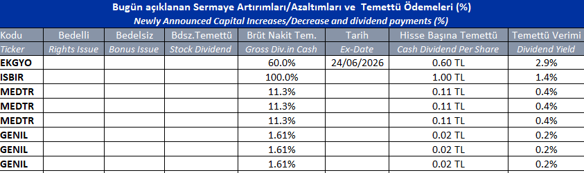 BIST piyasalarında oluşan tüm verilere ait telif hakları tamamen BIST’e ait olup, bu veriler tekrar yayınlanamaz. Pay Piyasası, Borçlanma Araçları Piyasası, Vadeli İşlem ve Opsiyon Piyasası verileri BIST kaynaklı en az 15 dakika gecikmeli verilerdir.