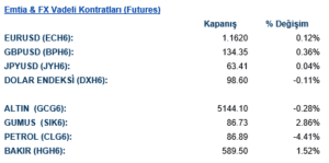 Emtia tarafında günün en dikkat çekici hareketi petrolde yaşandı. WTI kontratı %3,14 düşüşle 88,05 seviyesine geriledi. Petrol seans içinde 100 doların üzerine çıktıktan sonra sert geri çekildi. Bu, jeopolitik risklerin fiyatlamaya ne kadar agresif girdiğini ve ardından tek bir siyasi açıklamayla ne kadar hızlı geri verilebildiğini gösteriyor. Petrolün aşağı gelmesi, günün ikinci yarısındaki hisse senedi toparlanmasının en önemli nedenlerinden biri oldu. Çünkü piyasa açısından yüksek petrol demek daha yüksek enflasyon, daha düşük büyüme ve merkez bankaları açısından daha zor bir denklem anlamına geliyor. Bu yüzden petroldeki geri çekilme yalnızca enerji piyasası için değil, tüm riskli varlıklar için rahatlatıcı oldu.