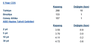 Buna karşılık gelişmekte olan ülke risk primi tarafında daha olumsuz bir tablo var. Türkiye’nin 5 yıllık CDS’i 10 baz puan artışla 268’e yükseldi. Brezilya ve Güney Afrika’da da 1 baz puanlık sınırlı artışlar var ama Türkiye açık biçimde negatif ayrışıyor. Bu hareket, jeopolitik konumun da etkisiyle küresel riskten kaçışın Türkiye gibi daha yüksek beta taşıyan ülkelere daha sert yansıdığını gösteriyor.