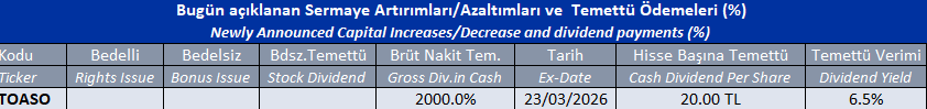 Sermaye Artırımları/Azaltımları ve Temettü Ödemeleri 23/03/2026