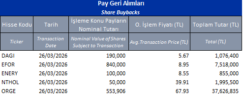 Pay geri alım programları kapsamında ilgili tarihte geri alım yapan şirketlerin listesini aşağıdaki tabloda bulabilirsiniz.