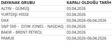 BIST piyasalarında oluşan tüm verilere ait telif hakları tamamen BIST’e ait olup, bu veriler tekrar yayınlanamaz. Pay Piyasası, Borçlanma Araçları Piyasası, Vadeli İşlem ve Opsiyon Piyasası verileri BIST kaynaklı en az 15 dakika gecikmeli verilerdir.
