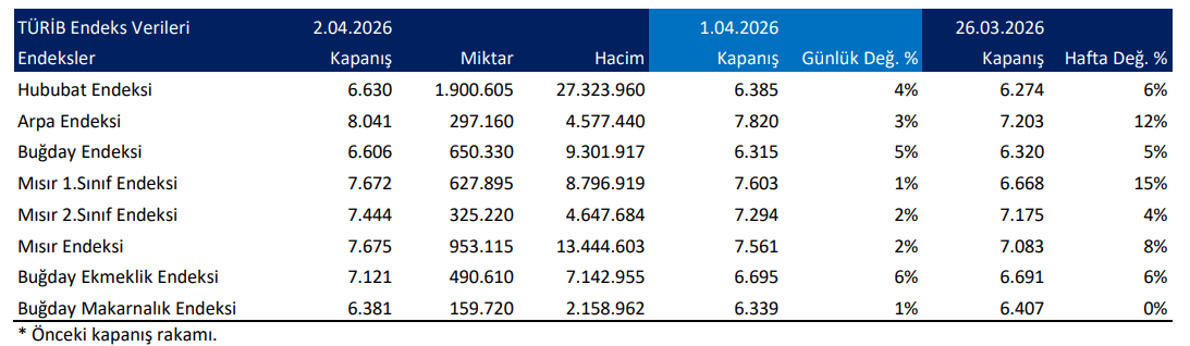 Veriler Türkiye Ürün ve İhtisas Borsası A.Ş. (TÜRİB) tarafından sağlanmakta olup, gecikmeli ve kamuya açık olarak yayımlanan www.turib.com.tr üzerinden temin edilmektedir.