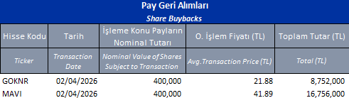 Pay geri alım programları kapsamında ilgili tarihte geri alım yapan şirketlerin listesini aşağıdaki tabloda bulabilirsiniz.
