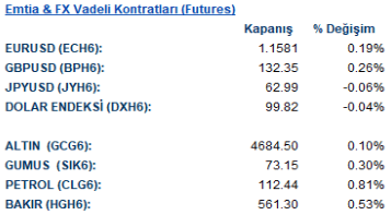 Döviz piyasasında dolar sınırlı değer kaybederken, Bloomberg Dolar Endeksi %0.1 geriledi. EURUSD paritesi %0.2 yükselişle 1.1542 seviyesine, GBPUSD %0.2 artışla 1.3235 seviyesine çıktı. Japon yeni ise dolar karşısında 159.70 seviyesinde yatay kaldı. Değerli metaller tarafında ise ons altın %0.5 düşüşle 4,655 dolar seviyesine geriledi.