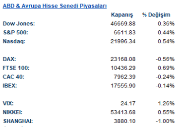 Tahvil piyasalarında sınırlı hareketler izlendi. ABD 10 yıllık tahvil faizi %4.34 seviyesinde yatay seyrederken, Almanya 10 yıllık tahvil faizi %2.99 ve İngiltere 10 yıllık tahvil faizi %4.83 seviyelerinde değişim göstermedi.