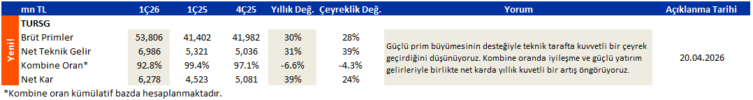 TURSG.IS: 1Ç26 Kar Tahmini