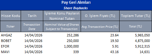 Pay Geri Alımları 14/04/2026