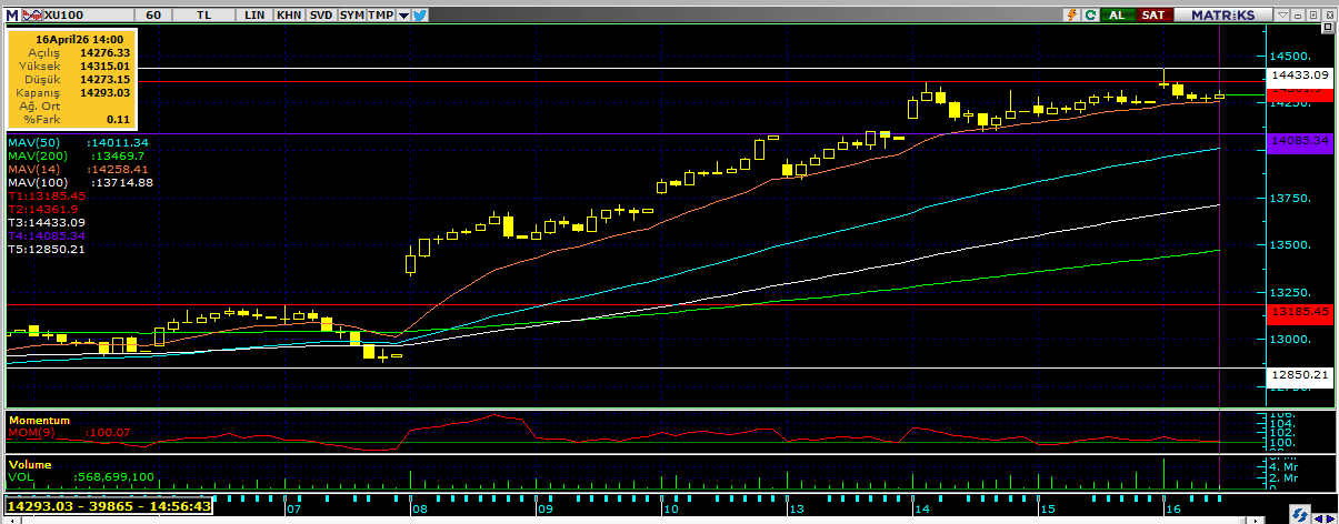 Endeks için kısa vadede 14.350 ve 14.450 seviyeleri direnç, 14.100 destek olarak öne çıkıyor. 14.250 altı fiyatlama desteğe yönelmesini hızlandırabilir, 14.350 üzeri bir kapanış kısa vade için olumlu olur.