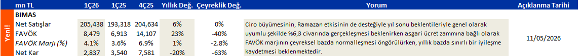 BIMAS.IS: 1Ç26 Kar Tahmini