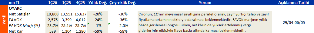 OYAKC.IS: 1Ç26 Kar Tahmini