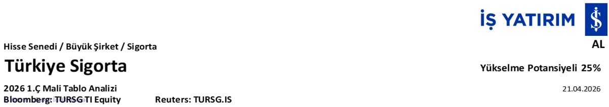Kombine oran, hasar oranındaki iyileşmenin desteğiyle %90 seviyesine geriledi. Türkiye Sigorta’nın geçen yılın aynı döneminde %97,1 seviyesinde bulunan kombine oranı, 1Ç26’da %90,3 olarak gerçekleşti. Böylece son yılların en düşük seviyesi görülürken, kombine oran üst üste dokuzuncu çeyrekte de %100’ün altında kalmaya devam etti. Bu görünüm, güçlü teknik disiplinin korunduğuna ve operasyonel karlılığın daha da iyileştiğine işaret etmektedir. Önümüzdeki dönemde kombine oranın 2026 yılı boyunca %100’ün altında kalmasını beklemekle birlikte, ilerleyen çeyreklerde %95 seviyelerine doğru normalleşebileceğini düşünüyoruz. Devam eden faiz indirim süreci kapsamında iskonto oranlarında en az iki ilave indirim daha bekliyoruz; bu durum kombine oran üzerinde bir miktar baskı yaratabilir.
