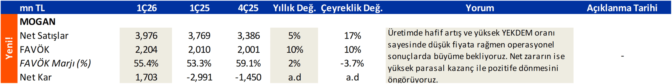 MOGAN.IS: 1Ç26 Kar Tahmini