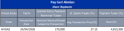 Pay geri alım programları kapsamında ilgili tarihte geri alım yapan şirketlerin listesini aşağıdaki tabloda bulabilirsiniz