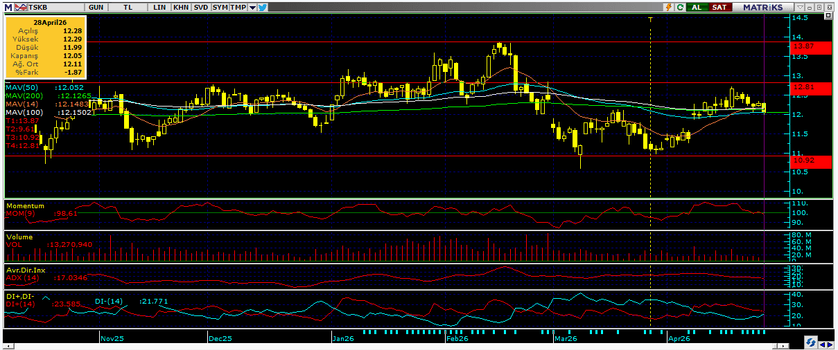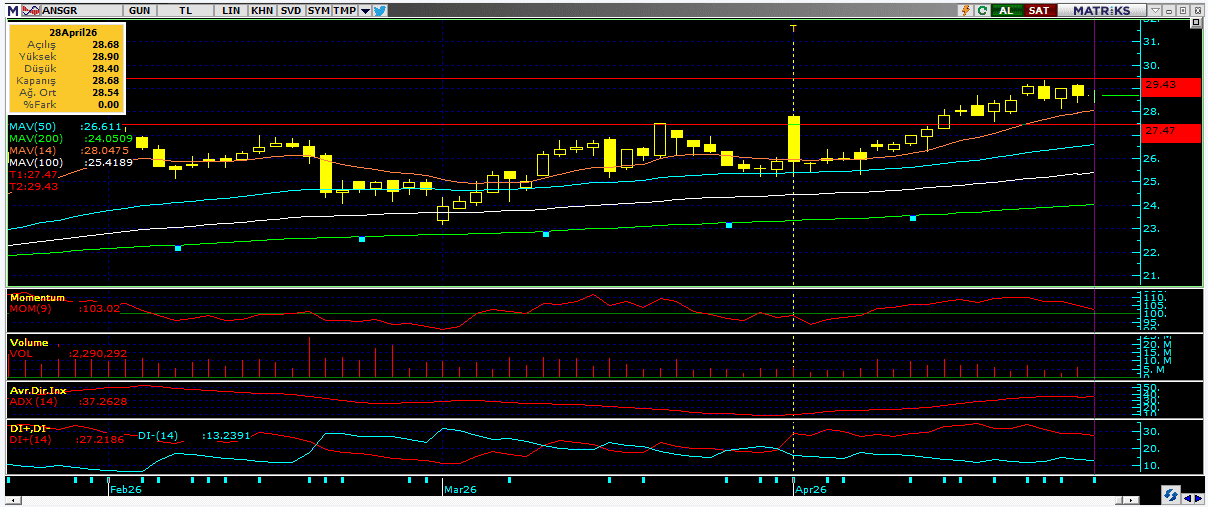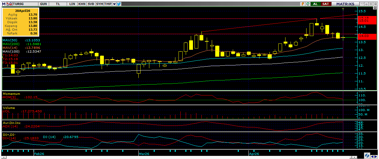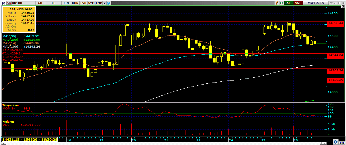 Endeks için kısa vadede 14.500 ve 14.600 seviyeleri direnç, 14.400 ve14.200 seviyeleri destek olarak öne çıkıyor.