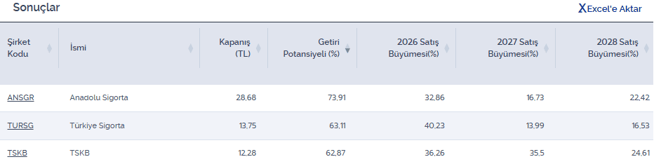2026, 2027 ve 2028’de en az %10 gelir büyümesi beklenen ve %60 üzeri getiri potansiyeli olan şirketler aşağıda inceleyebilirsiniz.