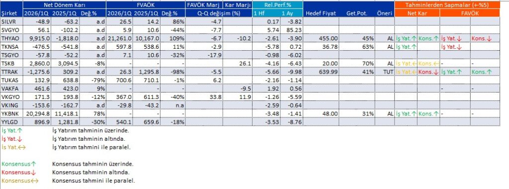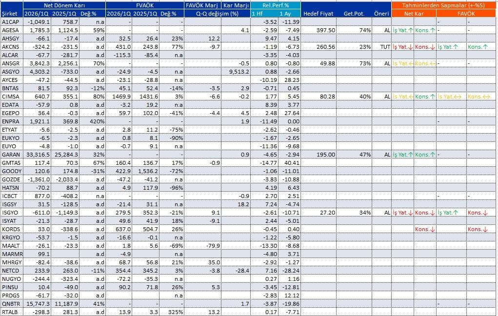 Raporun içinde ise, şu ana kadar finansallarını açıklayan BIST şirketlerini, kümüle edilerek toplanmış toplu piyasa ve sektör karlılıklarını ve piyasa tahminleri ile açıklanan finansal sonuçların karşılaştırmalı analizini bulabilirsiniz.
