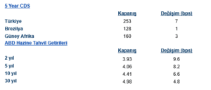 Orta Doğu’daki çatışmanın sonu görünmezken, para piyasaları bu yıl faiz indirimi beklentilerinden neredeyse tamamen vazgeçti ve 2027’de faiz artışı ihtimalini fiyatlamaya başladı. ABD 2 yıllık hazine tahvili faizi 10 baz puan artarak 3.93, 5 yıllık tahvil faizi 8.7 baz puan artarak 4.06, 10 yıllık tahvil faizi 7.2 baz puan artarak 4.41 seviyesine yükseldi.